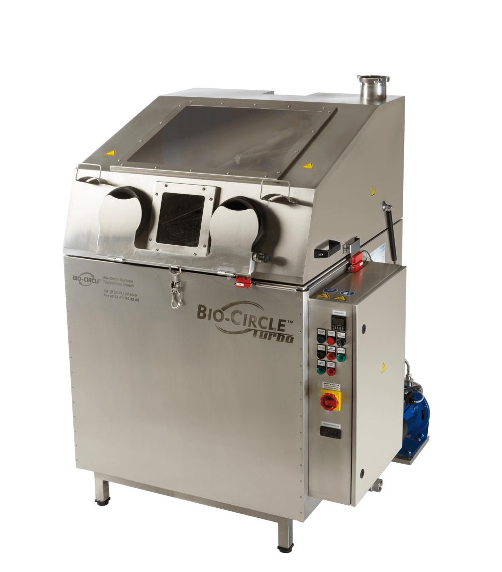 BIO-CIRCLE Turbo z nerezové oceli – účinná kombinace plně automatického a manuálního čištění pomocí čisticí kapaliny BIO-CIRCLE L Turbo s obsahem mikroorganismů. Díky otočnému koši a vysokému tlaku působí BIO-CIRCLE Turbo optimálně na čištění dílů. Pro rychlé a přesné manuální čištění lze namísto automatického módu použít na čištění kartáč, nebo trysku.